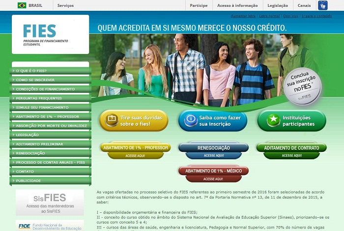 Os interessados em se inscrever no Fundo de Financiamento Estudantil (Fies) têm até às 23h59 da próxima quarta-feira (28) para realizar o procedimento. Para fazer a inscrição, o candidato precisa acessar o site do Ministério da Educação (MEC) e preencher a ficha com número do CPF, data de nascimento, e-mail e outros dados (confira aqui). Alunos que obtiveram média de pelo menos 450 no Exame Nacional do Ensino Médio (Enem) e que não zeraram a redação estão aptos a participar. É necessário também se encaixar nos limites de faixa de renda estabelecidos pelo programa. Como definido pelo Comitê Gestor do Fies no início deste ano, o financiamento máximo é de R$ 30 mil por semestre e o mínimo de R$ 300. O banco responsável por conceder o empréstimo, a instituição de ensino e o aluno devem ajustar os termos para esse financiamento. Segundo informações da Agência Brasil, após a conclusão do curso, o valor da parcela vai depender da renda do estudante.