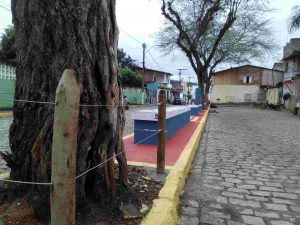 A pracinha foi pintada, árvores foram podadas, bancos receberam cerâmica, os canteiros receberam cerca moral e terão grama e flores. A iluminação também será melhorada.