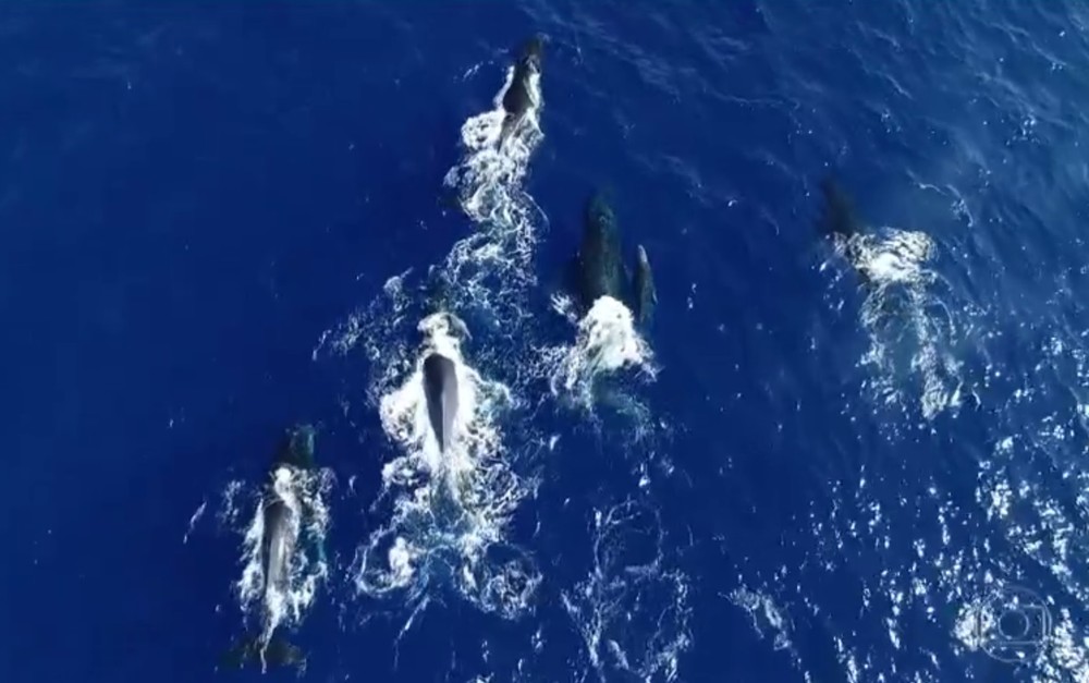 Baleias são observados do ar com drone — Foto: Reprodução/Rede Globo