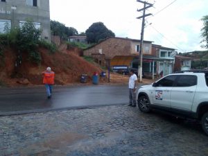 Foram vistoriados, locais com risco de deslizamento nos bairros: Marinho Freitas, Alto da Bela Vista, Arnulfo Órfão e BA 262.