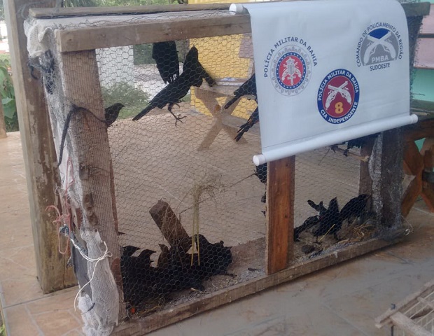 Durante o patrulhamento da PM no município de Nova Canaã, os agentes detectaram a existência das seguintes aves mantidas em cativeiro: 38 Pássaros Pretos, 09 Papa-capins, 04 Canários da Terra, 01 Cabocolinho, 01 Sabiá Laranjeira, 04 Sofrês, 02 Cardeais, 02 Papa-Arroz, 02 Tico-tico, 01 Coleirinha e no município de Iguaí: 03 Papa-capins e 01 Cabocolinho.