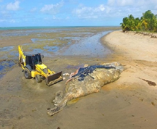 Uma baleia jubarte de mais de 13 metros foi encontrada morta no último sábado (2) na praia do Guaiú, em Santa Cruz Cabrália, no sul da Bahia. De acordo com o coordenador de Pesquisa do Projeto Baleia Jubarte, Milton Marcondes, o animal era um macho adulto e, quando encontrado, já estava em avançado estado de decomposição. Não foi possível estabelecer a causa da morte da baleia.