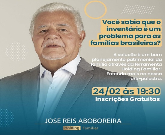 Chegou o momento de entender mais sobre Planejamento Patrimonial da Família através de uma palestra com o Dr. José Reis Aboboreira – Holding Familiar.