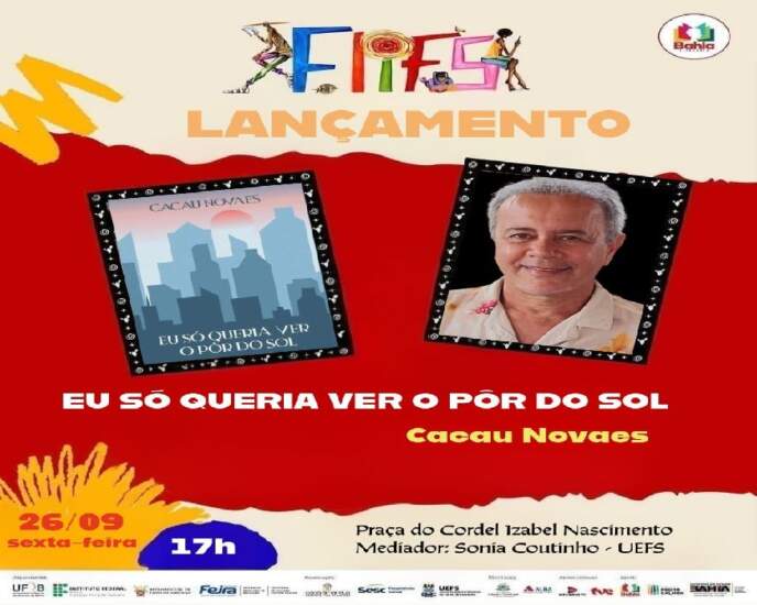 Já na sexta-feira (26), Cacau Novaes participa do Festival Literário e Cultural de Feira de Santana – Flifs, onde lança o seu livro “Eu só queria ver o pôr do sol”. Neste seu novo livro, o autor se debruça sobre a terra arrasada pelas guerras, as mazelas da humanidade, os problemas sociais das grandes cidades, como os esgotos a céu aberto, entro outros. Poesia que nasce no seio de onde vem o cheiro de miséria e a desigualdade. Poemas com crítica social, mas recheados de lirismo.