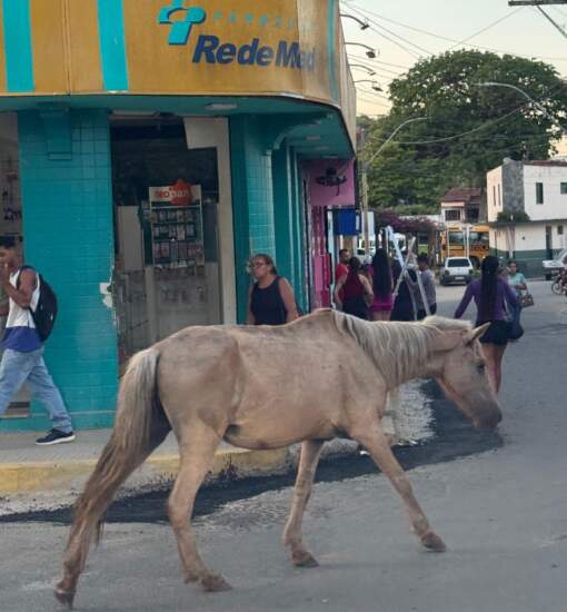 ” Já faz algum tempo que esses animais, especialmente cavalos vivem soltos por aí, as ruas e as praças sujas com cocô e urina, até o mento nada foi feito, sem falar que pode até causar acidentes.” disse um morador.